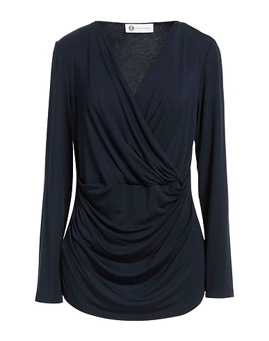 Tシャツ / ジャージー素材 / 無地 / ギャザー / 深く開いたネックライン / 長袖 / ストレッチ素材