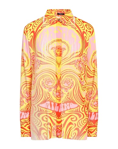 シャツ / クレープ素材 / マルチカラーデザイン / ブランドロゴ / プリーツ入り / クラシックカラー / 長袖 / 袖口にボタン付き / ボタンで開閉