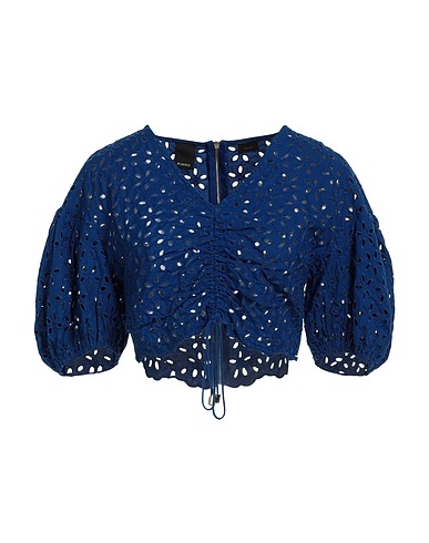 クロップドトップス / イギリス刺繍ホワイトワーク素材 / 無地 / 装飾なし / Vネック / 半袖 / バルーンスリーブ / 裏地なし / ファスナーで開閉