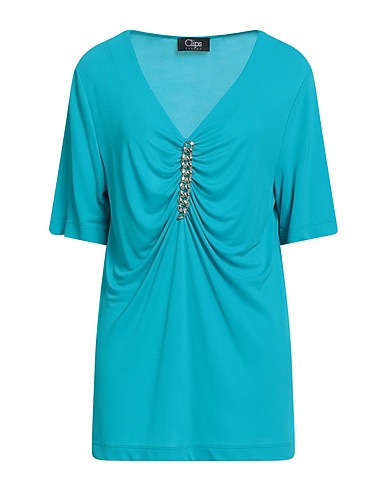 Tシャツ / ジャージー素材 / 無地(装飾付き) / 装飾付き素材 / ギャザー / Vネック / 半袖 / 洗濯機洗いまたはドライクリーニング可 / 漂白剤使用不可 / 乾燥機使用不可