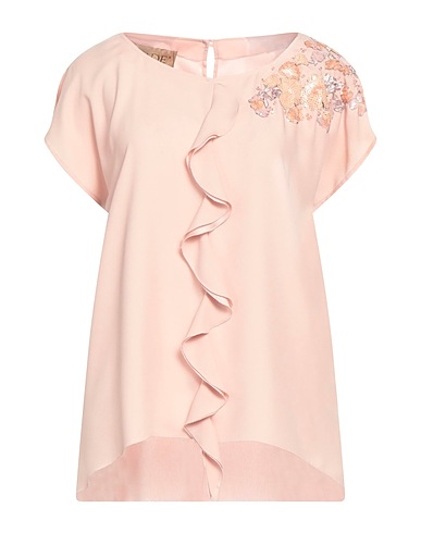 キャディ素材 / スパンコール付き / フリル付き / 無地(装飾付き) / クルーネック / 半袖 / ポケットなし / フリル付きトップス