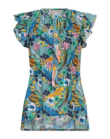 編み込み / ビーズ / ひも開閉 / ハワイアン柄 / クルーネック / 半袖 / ポケットなし / ハンドメイド / ボヘミアンブラウス