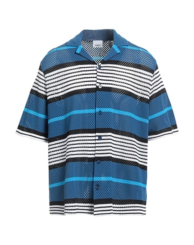ニット素材 / パーフォレーション加工 / 装飾なし / ストライプ / クラシックカラー / 半袖 / ボタンで開閉 / レギュラーフィットシャツ