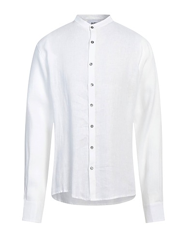 レギュラーフィットシャツ / 麻 / 無地 / 装飾なし / スタンドカラー / 長袖 / 袖口にボタン付き / ボタンで開閉 / 繊維でない動物性素材使用 / 手洗いまたはドライクリーニング / 漂白剤使用不可 / 乾燥機使用不可 / このブランドのアイテムは小さめに作られています