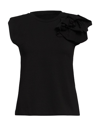 ジャージー素材 / 花模様のアップリケ付き / 無地 / クルーネック / 半袖 / ショルダーパッド付き / ポケットなし / ストレッチ素材 / トップス