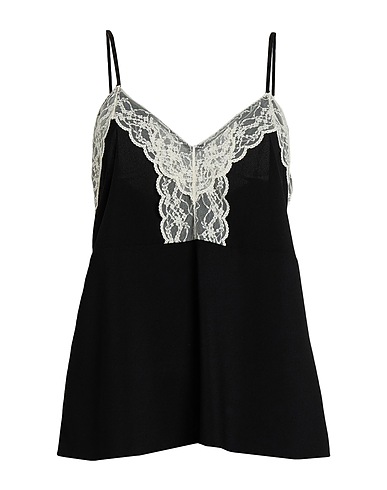 キャミソ-ル / クレープ素材 / レース素材のトリム / ブランドロゴ / バイカラーデザイン / 深く開いたネックライン / ノースリーブ / ポケットなし / 手洗いができます / 乾燥機使用不可