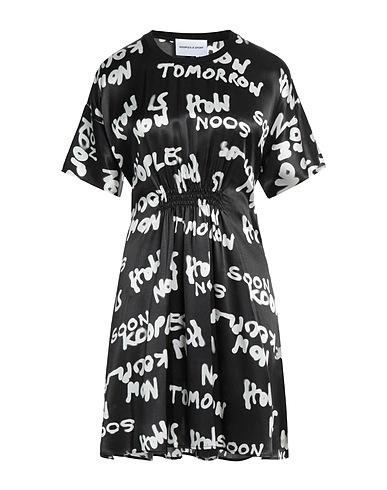 サテン素材 / ギャザー / バイカラーデザイン / クルーネック / 半袖 / 裏地なし / ポケットなし / Tシャツドレス