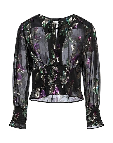 編み込み / ジャカード素材 / メタリック加工 / 装飾なし / 花柄 / Vネック / 長袖 / ひも結び開閉 / ペプラムトップス