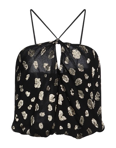 クロップドトップス / クレープ素材 / ジャカード素材 / メタリック加工 / 装飾なし / カットアウト入り / バイカラーデザイン / 深く開いたネックライン / ノースリーブ / ポケットなし / ドライクリーニングできます / 漂白剤使用不可 / 乾燥機使用不可 / このブランドのアイテムは大きめに作られています