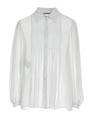 シャツ / クレープ素材 / プリーツ入り / 無地 / クラシックカラー / 長袖 / 袖口にボタン付き / ボタンで開閉 / ポケットなし / ドライクリーニングできます / 漂白剤使用不可 / 乾燥機使用不可