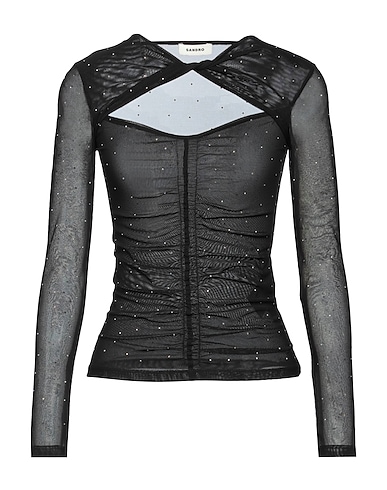 トップス / チュール素材 / クリスタル / ギャザー / 無地(装飾付き) / クルーネック / 長袖 / ポケットなし / ストレッチ素材 / 手洗いができます / 漂白剤使用不可 / 乾燥機使用不可 / アイロン不可