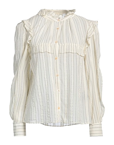 フリル付きシャツ / 編み込み / 装飾なし / ストライプ / スタンドカラー / 長袖 / 袖口にボタン付き / ボタンで開閉 / ポケットなし / 洗濯機洗いまたはドライクリーニング可 / 漂白剤使用不可 / 乾燥機使用不可