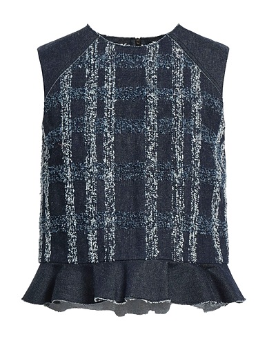 ペプラムトップス / デニム素材 / チェック柄 / 装飾なし / クルーネック / ノースリーブ / ファスナーで開閉 / 洗濯機洗いまたはドライクリーニング可 / 漂白剤使用不可 / 乾燥機使用不可