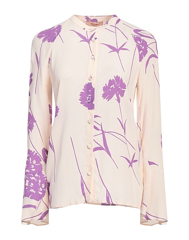 シャツ / クレープ素材 / 花柄 / 装飾なし / クルーネック / 長袖 / ボタンで開閉