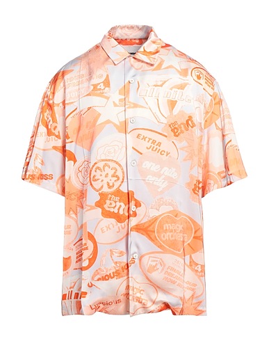 レギュラーフィットシャツ / サテン素材 / ロゴデザイン / ブランドロゴ / キャンプカラー / 半袖 / ボタンで開閉 / 繊維でない動物性素材使用 / ドライクリーニングできます / 漂白剤使用不可 / 乾燥機使用不可
