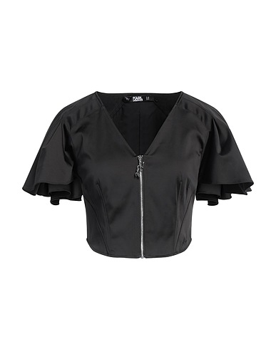 クロップドトップス / サテン素材 / 無地 / 刺繍ロゴ / 深く開いたネックライン / 半袖 / 裏地あり / ファスナーで開閉 / ストレッチ素材 / 洗濯機洗いまたはドライクリーニング可 / 漂白剤使用不可 / 乾燥機使用不可