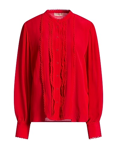 シャツ / クレープ素材 / 無地 / 刺繍入り / スタンドカラー / 長袖 / 袖口にボタン付き / ボタンで開閉 / ドライクリーニングできます / 漂白剤使用不可 / 乾燥機使用不可