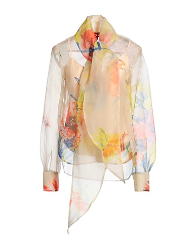 リボン付きシャツ / オーガンジー素材 / 花柄 / 装飾なし / 長袖 / 袖口にボタン付き / インナースリップ付き / ボタンで開閉 / ドライクリーニングできます / 漂白剤使用不可 / 乾燥機使用不可