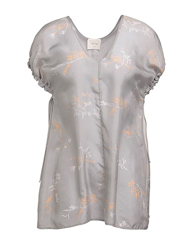 トップス / サテン素材 / 花柄 / 装飾なし / Vネック / 半袖 / ギャザースリーブ / ドライクリーニングできます / 漂白剤使用不可 / 乾燥機使用不可