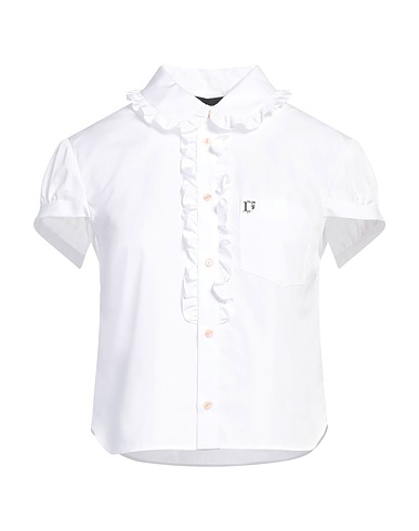 フリル付きシャツ / ポプリン素材 / 無地 / フリル付き / ブランドロゴ / ラウンドカラー / 半袖 / ボタンで開閉 / ポケット1つ / 洗濯機洗いまたはドライクリーニング可 / 漂白剤使用不可 / 乾燥機使用不可