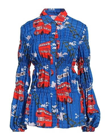 シャツ / クレープ素材 / マルチカラーデザイン / ギャザー / クラシックカラー / 長袖 / ボタンで開閉 / 手洗いまたはドライクリーニング / 漂白剤使用不可 / 乾燥機使用不可