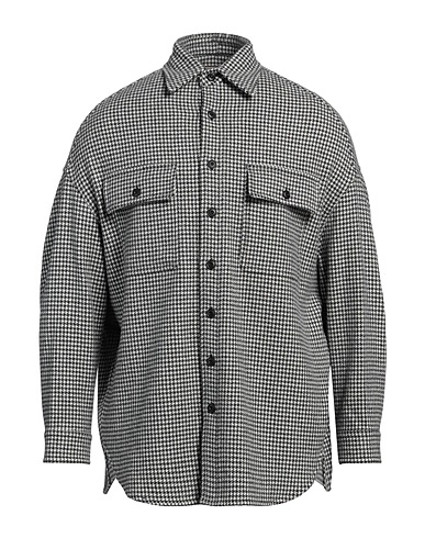 サファリシャツ / フランネル素材 / ハウンドトゥースチェック柄 / 装飾なし / クラシックカラー / 長袖 / ボタンで開閉 / ポケット2つ / ドライクリーニングできます / 漂白剤使用不可 / 乾燥機使用不可