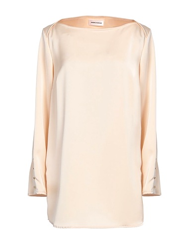 トップス / サテン素材 / 無地 / 装飾なし / クルーネック / 長袖 / 袖口にボタン付き / 裾のサイドにスリット入り / 洗濯機洗いまたはドライクリーニング可 / 漂白剤使用不可 / 乾燥機使用不可