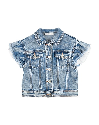 編み込み / デニム素材 / 色あせ加工 / 無地(装飾付き) / 刺繍ロゴ / クリスタル / ミディアムウォッシュ / クラシックカラー / シングルブレスト / 半袖 / 裏地なし / ボタンで開閉 / ポケット2つ / 洗濯機で洗濯できます / 漂白剤使用不可 / 乾燥機使用不可