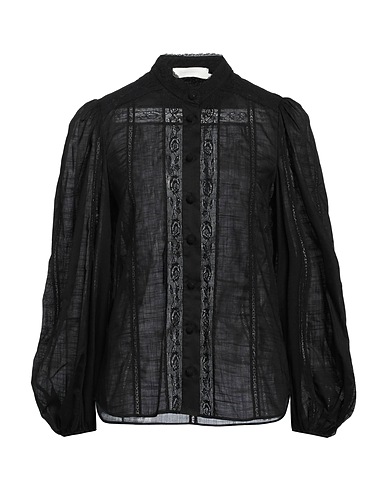 シャツ / ガーゼ素材 / 無地 / レース素材のトリム / ギャザー / スタンドカラー / 長袖 / ボタンで開閉 / ドライクリーニングできます / 漂白剤使用不可 / 乾燥機使用不可