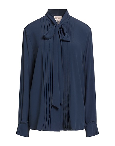 リボン付きシャツ / クレープ素材 / 無地 / プリーツ入り / 長袖 / 袖口にボタン付き / ボタンで開閉 / ドライクリーニングできます / 漂白剤使用不可 / 乾燥機使用不可