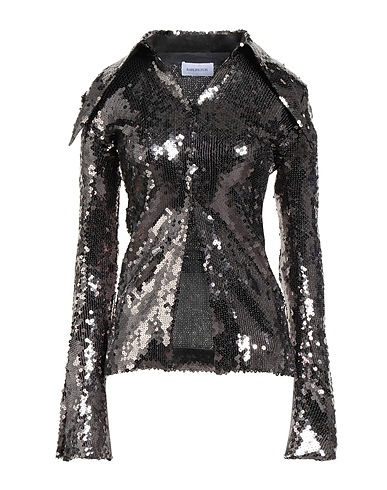 シャツ / チュール素材 / 無地(装飾付き) / スパンコール付き / クラシックカラー / 長袖 / スリットカフス / 裏地あり / ストレッチ素材 / 専門業者によるクリーニングまたはドライクリーニング / 乾燥機使用不可