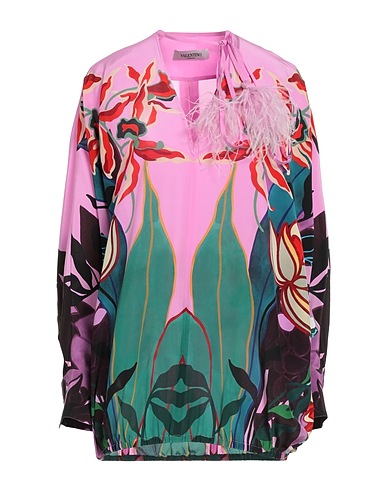 ボヘミアンブラウス / クレープ素材 / 花柄 / 羽根付き / Vネック / 長袖 / 袖口にボタン付き / 繊維でない動物性素材使用 / ドライクリーニングできます / 乾燥機使用不可