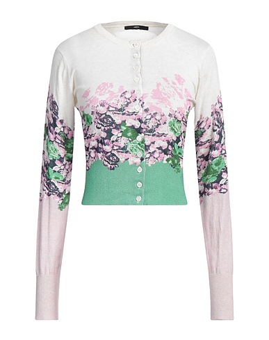 ニット素材 / 薄手ニット素材 / 装飾なし / 花柄 / クルーネック / 長袖 / ボタン開閉 / ポケットなし