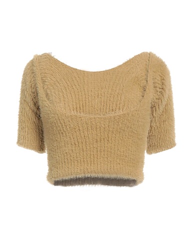 ニット素材 / 中厚ニット / オープンバック / 無地 / ボートネック / 七分袖 / ポケットなし