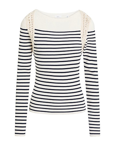 ニット素材 / リブ編み / 中厚ニット / ストライプ / 装飾なし / ボートネック / 長袖 / ドライクリーニングできます / 漂白剤使用不可 / 乾燥機使用不可