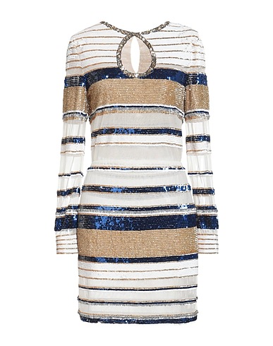 チュール素材 / スパンコール付き / ストライプ / クルーネック / 長袖 / ショルダーパッド付き / 裏地なし / ファスナー付き / カギホック開閉 / ポケットなし / トラペーズモデル