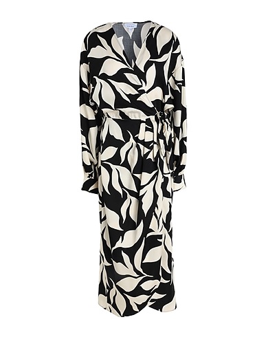 ラップオーバードレス / 編み込み / 花柄 / ギャザー / Vネック / 長袖 / 袖口にボタン付き / 裏地なし / ストリングで開閉