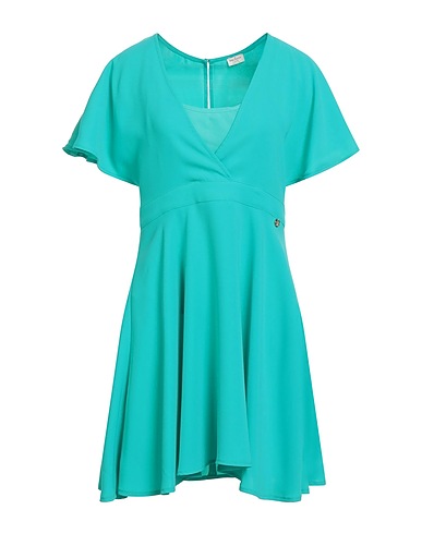 フレア ワンピース / クレープ素材 / 無地 / カットアウト入り / 深く開いたネックライン / 半袖 / 裏地なし / ファスナーで開閉 / 1つボタン / 洗濯機洗いまたはドライクリーニング可 / 漂白剤使用不可 / 乾燥機使用不可