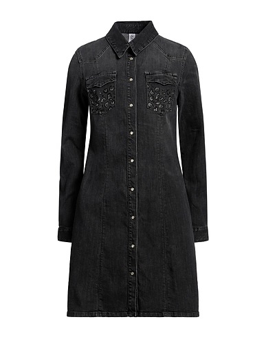 デニム素材 / クリスタル / 無地 / クラシックカラー / 長袖 / 裏地なし / スナップボタン開閉 / ポケット複数あり / ストレッチ素材 / シュミーズドレス