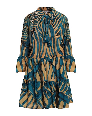 フレア ワンピース / 編み込み / ゼブラ柄 / ビーズ / クルーネック / 長袖 / 裏地なし / ポケットなし / 洗濯機洗いまたはドライクリーニング可 / 乾燥機使用不可