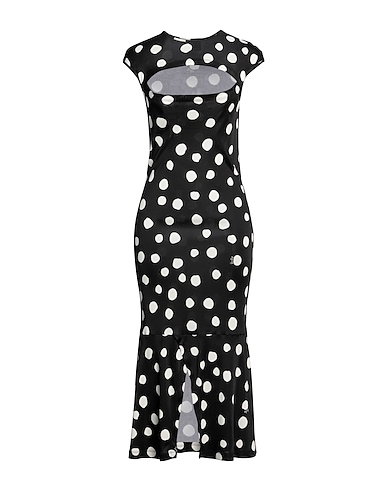 ボディコンドレス / 合成繊維ジャージー素材 / 水玉 / ブランドロゴ / クルーネック / 半袖 / キャップスリーブ / 裏地なし / ポケットなし / フロントにスリット入り / フレアスタイルの裾 / 手洗いまたはドライクリーニング / 漂白剤使用不可 / 乾燥機使用不可