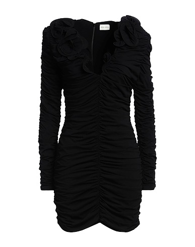 ボディコンドレス / 合成繊維ジャージー素材 / 無地 / ギャザー / フリル付き / 深く開いたネックライン / 長袖 / 裏地なし / ファスナーで開閉 / ポケットなし / ストレッチ素材 / ドライクリーニングできます / 漂白剤使用不可 / 乾燥機使用不可 / 心華やぐパーティルックでいつもとは違う表情を見せて
