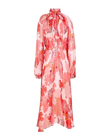 フレア ワンピース / クレープ素材 / 花柄 / 装飾なし / ボウタイネック / 長袖 / 裏地あり / ファスナーで開閉 / ポケットなし