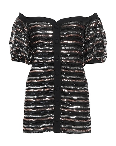 オープンショルダーシャツ / チュール素材 / ストライプ / スパンコール付き / 半袖 / ボタンで開閉 / 手洗いまたはドライクリーニング / 漂白剤使用不可 / 乾燥機使用不可
