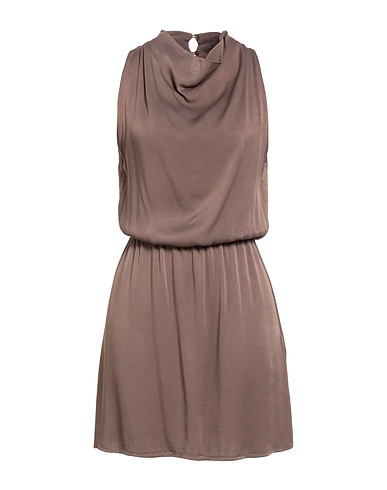 フレア ワンピース / サテン素材 / 無地 / 装飾なし / ドレープネック / ノースリーブ / 裏地なし / ボタンで開閉 / ドライクリーニングできます / 漂白剤使用不可 / 乾燥機使用不可