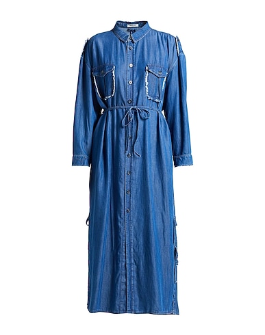 シュミーズドレス / デニム素材 / 色あせ加工 / 無地 / 装飾なし / クラシックカラー / ミディアムウォッシュ / 長袖 / 裏地なし / ボタンで開閉 / ポケット複数あり / 洗濯機で洗濯できます / 漂白剤使用不可 / 乾燥機使用不可