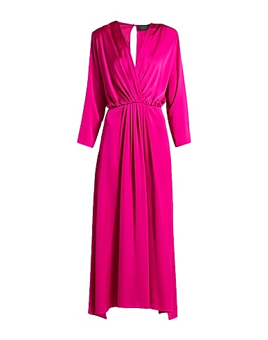 フレア ワンピース / サテン素材 / 無地 / ギャザー / ベルト付き / 深く開いたネックライン / 長袖 / パッド入りショルダー / 1つボタン / 洗濯機で洗濯できます / 漂白剤使用不可 / 乾燥機使用不可 / 結婚式のゲストスタイルにもぴったりのエレガントなセレモニールック