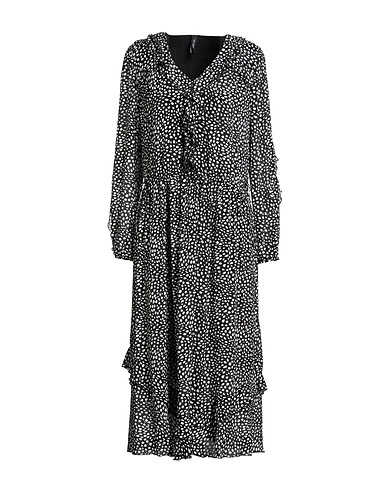 フレア ワンピース / サテン素材 / バイカラーデザイン / フリル付き / Vネック / 長袖 / 裏地あり / ウエストにドローストリング入り / ポケットなし / 手洗いまたはドライクリーニング / 漂白剤使用不可 / 乾燥機使用不可