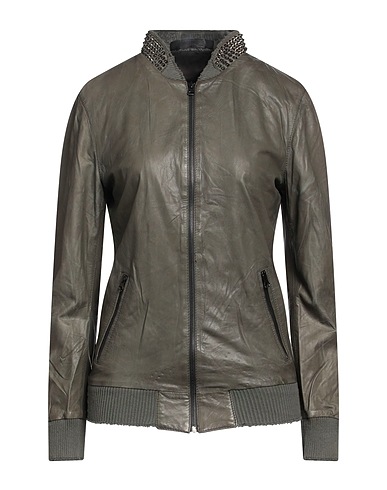 レザー / スタッズ付き / 無地(装飾付き) / クルーネック / シングルブレスト / 長袖 / 裏地あり / ファスナー付き / ポケット複数あり / 繊維でない動物性素材使用 / ボンバースタイル
