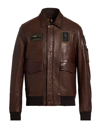 ブルゾン / レザー / ブランドロゴ / パッチ付き」 / ニットのトリミング / 無地(装飾付き) / クラシックカラー / 長袖 / 裏地あり / ファスナーで開閉 / ポケット複数あり / 繊維でない動物性素材使用 / ドライクリーニングできます / 漂白剤使用不可 / 乾燥機使用不可 / アイロン不可